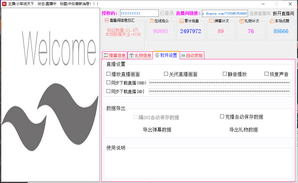 - 点赞信息统计:全面记录直播间点赞数据,反映观众互动热情与直播内容吸引力